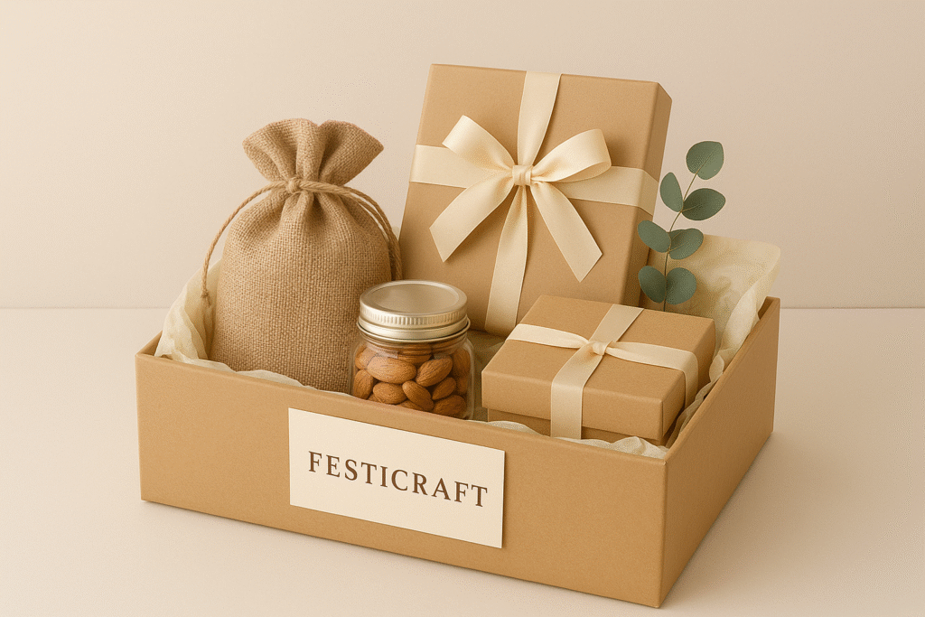 At Festicraft, we believe every celebration deserves to be thoughtful, beautiful, and responsible. We curate premium hampers that not only bring joy but also reflect care for the environment. Our products are crafted with love, using high-quality, sustainable materials that are reusable and eco-friendly — because a great gift shouldn’t come with waste.