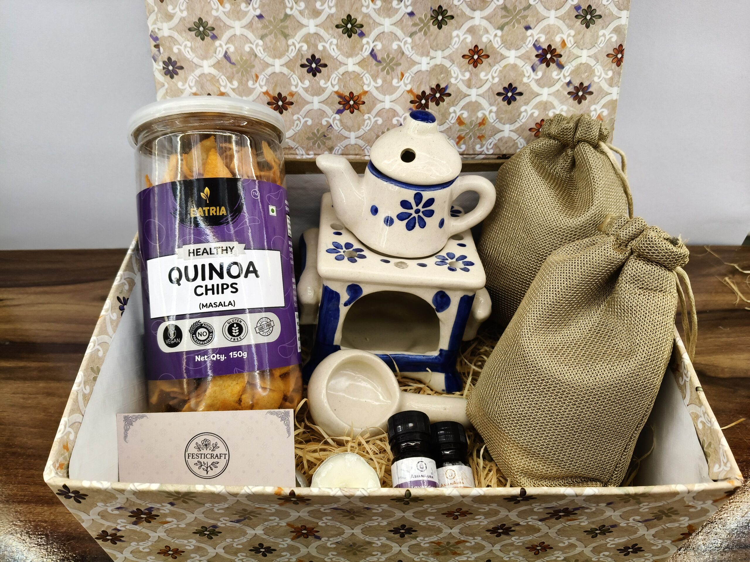 The Royal Harmony Hamper is a luxurious gifting choice that beautifully combines healthy indulgence, premium dry fruits, and calming aromatherapy. Designed to impress, it’s perfect for festive celebrations, corporate gifting, or personal occasions.